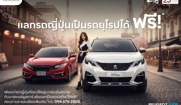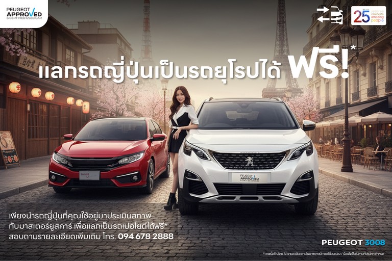 มาสเตอร์ เซอร์ทิฟายด์ ยูสคาร์ ศูนย์รวมรถยนต์มือสองครบวงจร ภายใต้บริษัท มิลเลนเนียม กรุ๊ป คอร์ปอเรชั่น (เอเชีย) จำกัด (มหาชน) ขอเชิญชวนเจ้าของรถยนต์ญี่ปุ่น ที่กำลังมองหาความเปลี่ยนแปลงครั้งสำคัญ สู่การเป็นเจ้าของรถยนต์ยุโรปมือสองระดับพรีเมียม PEUGEOT APPROVED & CERTIFIED USED CAR กับเอสยูวียอดนิยม รุ่น 2008, 3008, หรือ 5008 โดยนำรถคันปัจจุบันมาประเมินราคาสูงสุด* เพื่อรับมูลค่าพิเศษในการแลกเปลี่ยนเป็นรถ PEUGEOT APPROVED & CERTIFIED USED CAR ได้อย่างคุ้มค่า
