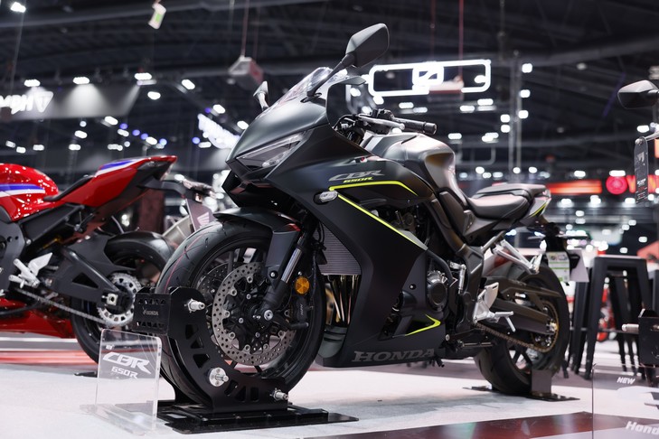 ต่อด้วย New Honda CBR650R สปอร์ตไบค์สายพันธุ์นักแข่ง ที่ติดตั้ง Honda E-Clutch เทคโนโลยีคลัตช์ไฟฟ้าอัจฉริยะ ช่วยให้บิดมันส์ได้โดยไม่ต้องกำคลัตช์ พร้อมโหมดเปิด–ปิดการทำงานตามสไตล์ผู้ขับขี่ ดีไซน์ภายนอกได้รับการรีเฟรชให้ดุดันยิ่งขึ้น มาพร้อมสีใหม่ Mat Gunpowder Black Metallic ถอดแบบดีเอ็นเอความเป็นสปอร์ตตัวจริง วางจำหน่ายในราคาแนะนำ 347,300 บาท