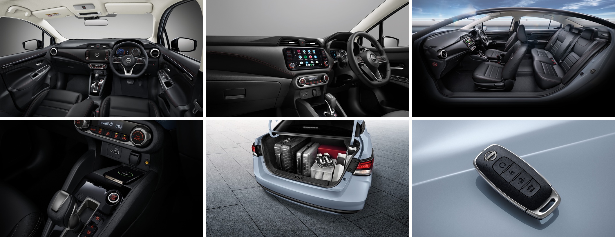 รวมทั้งยังมีห้องโดยสารที่กว้างขวางนั่งสบาย พร้อมกับเทคโนโลยีความปลอดภัยครบครัน โดยเป็นรุ่นแรกของเซกเมนท์ที่มีการติดตั้งฟังก์ชั่น SOS เพื่อขอความช่วยเหลือในกรณีฉุกเฉิน NissanConnect Services ที่ช่วยให้ผู้ขับขี่สื่อสารและควบคุมรถได้ด้วยระบบสั่งการระยะไกลต่าง ๆ เช่น ระบบสตาร์ทเครื่องยนต์ระยะไกล และระบบตรวจสอบสถานะการล็อกประตู ตลอดจนเทคโนโลยีที่เพิ่มความสะดวกและปลอดภัยเช่น ระบบควบคุมความเร็วอัตโนมัติ (Cruise Control) ในรุ่น EL ขึ้นไป