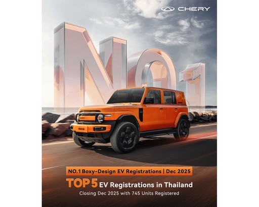 เชอรี ประเทศไทย ประสบความสำเร็จอย่างต่อเนื่องจากการเข้าร่วมงานมหกรรมยานยนต์ ครั้งที่ 42 ด้วยผลงานการจดทะเบียนรถยนต์ไฟฟ้าเดือนธันวาคม 2568 สามารถก้าวขึ้นติดอันดับ Top 5 สูงสุดของประเทศ อีกทั้งยังเป็นอันดับที่ 1 สำหรับรถยนต์ไฟฟ้าทรงกล่อง แสดงให้เห็นถึงความเชื่อมั่นของผู้บริโภค และแนวโน้มความนิยมที่เพิ่มขึ้นของรถยนต์ไฟฟ้าเชอรีในตลาดประเทศไทย