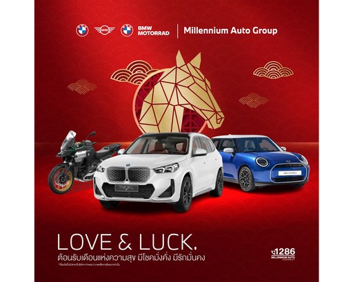 บริษัท มิลเลนเนียม ออโต้ กรุ๊ป จำกัด ผู้จำหน่ายรถยนต์ บีเอ็มดับเบิลยู, มินิ และมอเตอร์ไซค์ บีเอ็มดับเบิลยู มอเตอร์ราด อย่างเป็นทางการในประเทศไทย ภายใต้บริษัท มิลเลนเนียม กรุ๊ป คอร์ปอเรชั่น (เอเชีย) จำกัด (มหาชน) หรือ MGC-ASIA ร่วมฉลองเดือนแห่งความรักและความมงคล ภายใต้แคมเปญ ‘LOVE & LUCK’ เชื่อมโยงเทศกาลวาเลนไทน์และตรุษจีน เข้ากับไลฟ์สไตล์ระดับพรีเมียม ผสานกิจกรรมและข้อเสนอพิเศษตลอดเดือนกุมภาพันธ์ 2569 ที่โชว์รูม บีเอ็มดับเบิลยู มิลเลนเนียม ออโต้ และ มินิ มิลเลนเนียม ออโต้ ทุกสาขาทั่วประเทศ