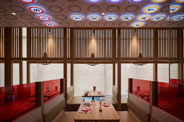 ในด้านบรรยากาศและการตกแต่งนั้นได้รับการออกแบบใหม่ทั้งหมด โดยเน้นโทนสีสว่าง โปร่งโล่ง สบายตา สะท้อนความทันสมัยและเข้าถึงง่าย ผนังร้านตกแต่งด้วยกราฟิกสไตล์ญี่ปุ่นร่วมสมัย ผสมผสานกับป้ายนีออนเฟล็กซ์ที่เสริมบรรยากาศสนุก มีชีวิตชีวา ถ่ายทอดแรงบันดาลใจจากร้านอิซากายะแบบญี่ปุ่นแท้ ๆ ซึ่งเหมาะกับการถ่ายรูป แชร์ หรือใช้เวลาอย่างมีความสุข ไม่ว่าจะเป็นในมื้อกลางวันแบบรวดเร็ว หรือมื้อเย็นที่แฮงเอาท์กับเพื่อนฝูง