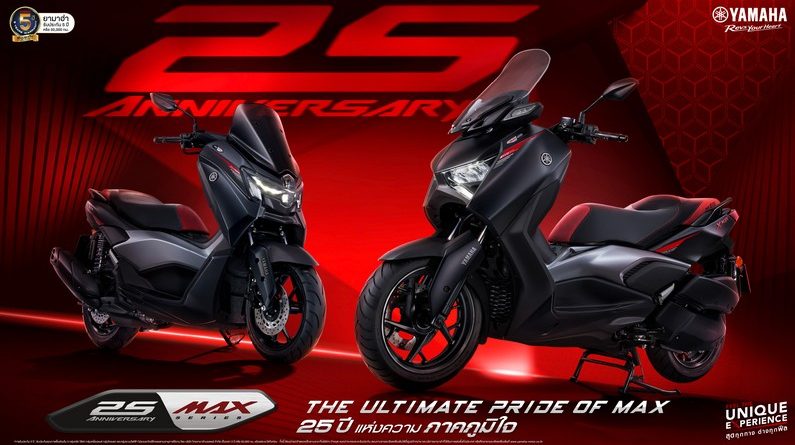 บริษัท ไทยยามาฮ่ามอเตอร์ จำกัด ตอกย้ำความเป็นผู้นำตลาดรถจักรยานยนต์พรีเมียมสปอร์ตออโตเมติก เปิดตัว NEW YAMAHA XMAX และ NEW YAMAHA NMAX รุ่นพิเศษ 25th Anniversary MAX Series ภายใต้แนวคิด “THE ULTIMATE PRIDE OF MAX” เพื่อร่วมเฉลิมฉลองวาระครบรอบ 25 ปี ของตระกูล MAX SERIES ที่เริ่มต้นเส้นทางครั้งแรกในปี 2001 กับ TMAX ผู้บุกเบิกความสปอร์ตพรีเมียม ก่อนต่อยอดความสำเร็จสู่ XMAX ในปี 2008 และ NMAX ในปี 2015 จนกลายเป็นหนึ่งในตระกูลรถออโตเมติกสปอร์ตระดับพรีเมียมที่ได้รับความนิยมอย่างต่อเนื่องในระดับโลก