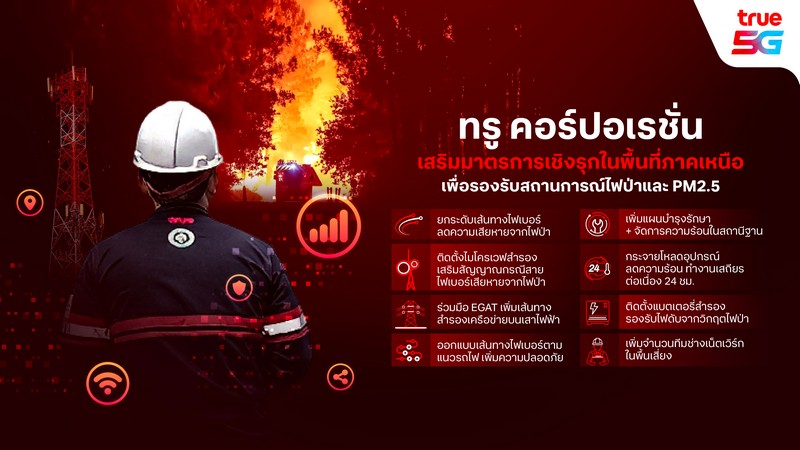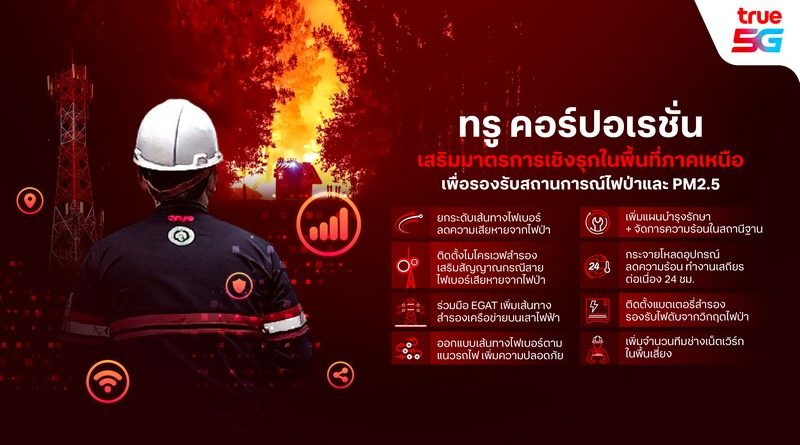 ทรู คอร์ปอเรชั่น เสริมมาตรการเชิงรุกเพิ่มประสิทธิภาพโครงข่ายพื้นที่ภาคเหนือรองรับสถานการณ์ไฟป่า และ PM 2.5 ได้แก่