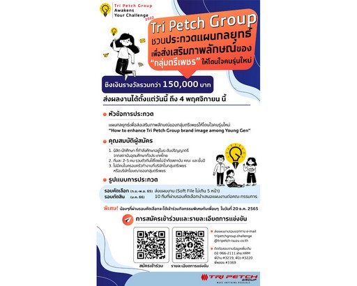 “กลุ่มตรีเพชร” ชวนน้อง ๆ ประกวดแผนกลยุทธ์ทางธุรกิจ ในโครงการ “Tri Petch Group Awakens Your Challenge 2022”