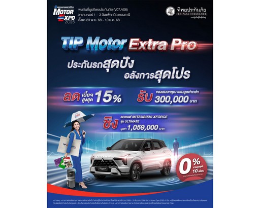 ทิพยประกันภัย จัดเต็มแคมเปญใหญ่ส่งท้ายปี “TIP MOTOR EXTRA PRO” พร้อมโปรแรงเฉพาะงาน Motor Expo 2025