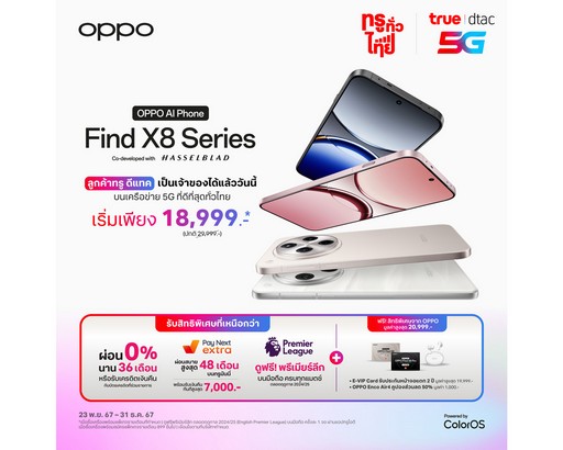 ออปโป้ ประเทศไทย เดินเกมรุกตลาดพรีเมียม เปิดตัวสมาร์ตโฟนแฟลกชิปรุ่นใหม่ล่าสุด “OPPO Find X9 Series” สมาร์ตโฟน “ซูมดีทุกคอนเสิร์ต” ตอบโจทย์ผู้บริโภครุ่นใหม่ที่นิยมถ่ายคอนเทนต์จากคอนเสิร์ตและอีเวนต์จากสมาร์ตโฟน ด้วยกล้อง Hasselblad Telephoto ความละเอียดสูงสุด 200MP พลังซูมไกล 120X Super Zoom